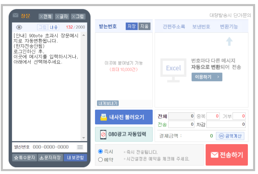 문자나라라는 곳을 알고계시나요? 문자나라는 자체 개발 대량전송 프로그램을 보유하고 고화질 이미지 맞춤제작 및 대량전송이 가능한 곳입니다. 좀더 쉽게 풀어드리자면 예약문자를 보내기, 대량문자보내기. 그림문자보내기 등등이 있습니다. 대부분 문자관련 서비스는 전부하고 있다고 보면 될 것 같습니다.