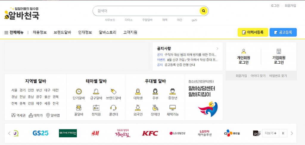 아르바이트를 찾는 사람들에게 가장 익숙한 사이트 중 하나는 알바천국입니다. 이 사이트는 지역별로 깔끔하게 정리되어 있어 일자리를 구하는 데에 큰 도움을 줍니다.