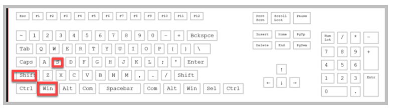 표준 101 키를 기준으로 해서 위의 이미지에 위치한 단축키를 클릭을 하시면 현재 화면 그대로 이미지로 저장하여 클립보드로 저장이 됩니다. 만약 다중 모니터를 사용한다면 모든 모니터의 내용을 캡쳐하게 됩니다. 캡쳐된 이미지를 이용하여 그림판이나, PPT 프로그램에서 가공을 하는 방법을 많이 이용합니다.