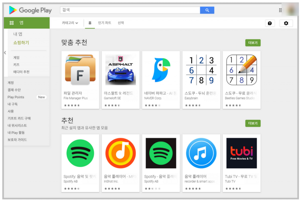 2.웹 버전 이용: google store는 웹 버전도 제공되며, 웹을 통해 어플리케이션을 깔 수 있습니다. 따라서 [Play 스토어 웹버전] 에 접속한 후 어떤 앱을 한 개 설치하면 스토어가 자동으로 깔릴 수도 있습니다. 스토어가 스타터의 개념이기 때문입니다.